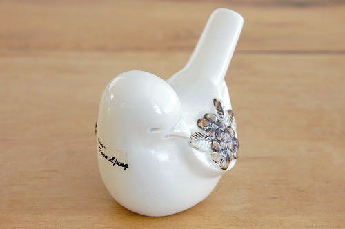 北欧は本当に鳥をモチーフにしたデザインが多いですが、こちらは特に乙女心をくすぐられるテイストのオブジェですね。胸にあしらわれた紫色の花模様がとても愛らしいです。