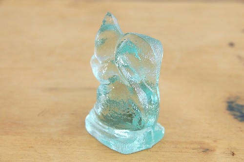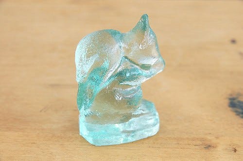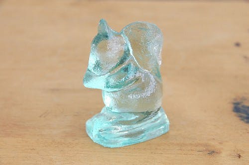 薄いグリーン色の手触りの良いガラスの質感もすてきですし、両手でどんぐりでも食べているのでしょうか?可愛らしい仕草がまた一層魅力的ですね。