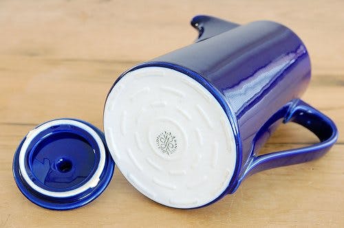 デンマークで見つけた陶器のティーポット(ブルー)です。