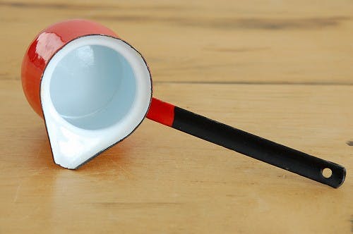 キッチン周りにフックなどを使ってぶら下げておきたくなりますね。コンロの上に金網をのせて、その上でバターやコーヒーや紅茶に入れるミルクを温めたりするのに使っていただけると思います。少量のソースを温める時なんかにも便利なのではないかと。