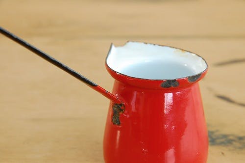 デンマークで見つけた、ホーロー製のミルクウォーマー/バターウォーマー(レッド)です。こちらのアイテム、久しぶりの再入荷です。