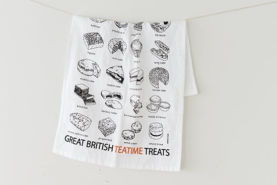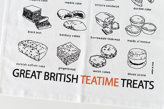 イギリスの伝統料理やお菓子をモチーフにしたオリジナルアイテムを提案するedith&bobから、かわいいイラストの「ティータオル」が届きました!