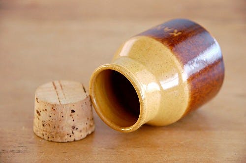 コルクの蓋に経年使用による劣化が見られますが、蓋の閉まりはしっかりとしています。表面にごく薄く貫入が見られますがその他は特に問題のないコンディションです。