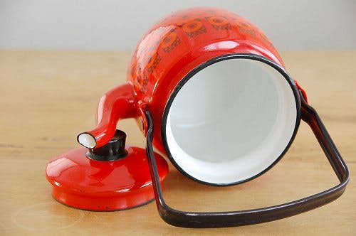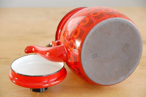 フィネル社、Esteri Tomula/エステリ・トムラがデコレートデザインを手掛けたホーローケトル(レッド花柄)です。