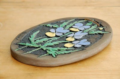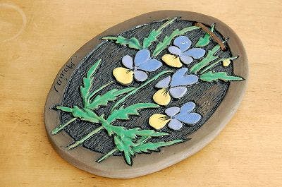 スウェーデンで見つけた、陶板の壁掛け(紫色のお花)です。