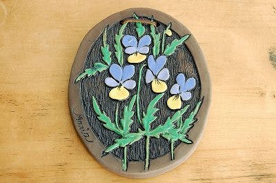 当店でも大人気アイテムの陶板の壁掛けですが、こちらの壁掛けもまた紫色のお花がフェミニンな雰囲気でとても素敵です。