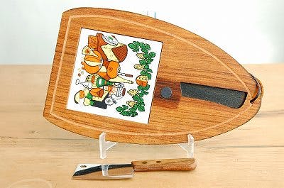 状態 :木製の部分に経年使用による若干のスクラッチが見られますが、タイルの部分やナイフの刃も良好に保たれており、ヴィンテージ品としては良好なコンディションです。