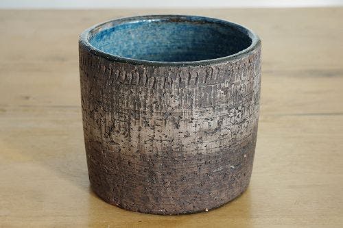 こちらの植木鉢は、ザラリとした陶器の素朴な質感と、内側に塗られた艶のあるシックなブルーの組み合わせが本当に素敵ですね。どんな植物をこの植木鉢にあしらおうかと考えるひと時も楽しいものだと思います。