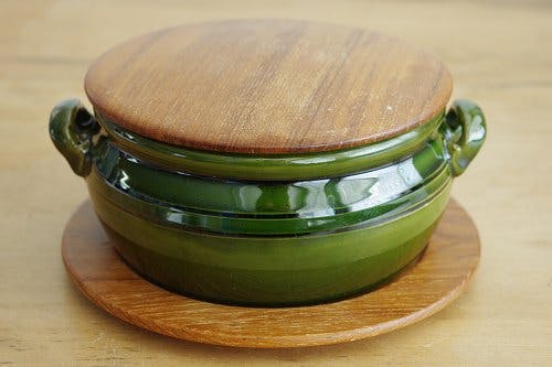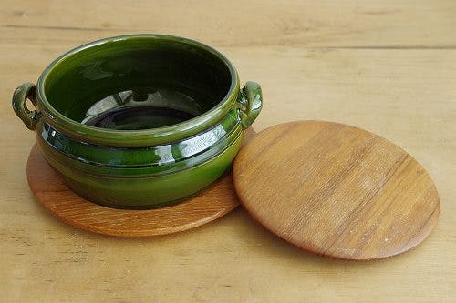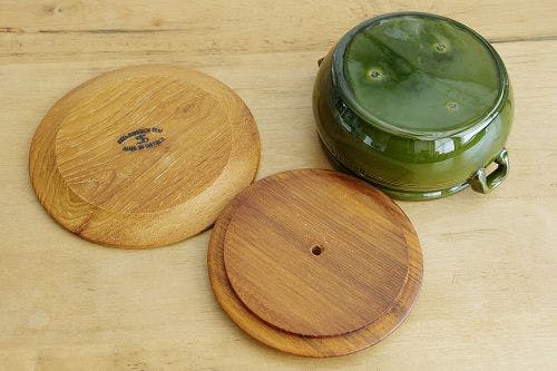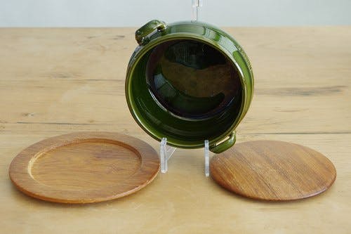 スウェーデンで見つけたHOGANAS社製の木製カバー&トレー付き陶器のポット(丸型)です。当店でもお陰様で人気のアイテムとなっておりますが、この度いつもとはちょっと変わったデザインのこちらのポットで再入荷となりました!
