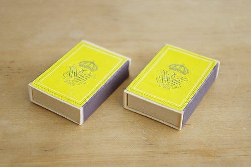 紙製の箱なのでどうしても経年による多少の傷みは見られますが、このマッチ箱は長い年月を得ているからこその味わいを感じます。優しい黄色のパッケージが、とても温かくおだやかな印象です。