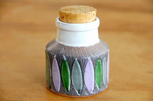 スウェーデンで見つけた陶器のスパイスポット(コルク蓋付き)です。