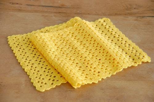 スウェーデンで見つけた、手編みのテーブルランナー(イエロー)です。