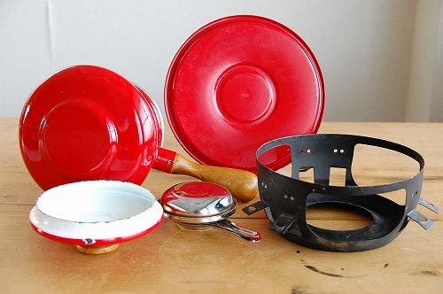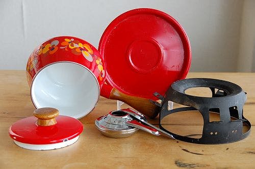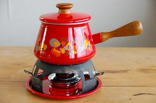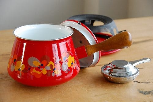 スウェーデンで見つけたホーロー製フォンデュパンセット(レッド)です!