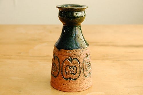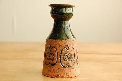 こっくりとしたシックなブラウンに、ぐるりと並んだリンゴの模様が可愛いこちらの花瓶。