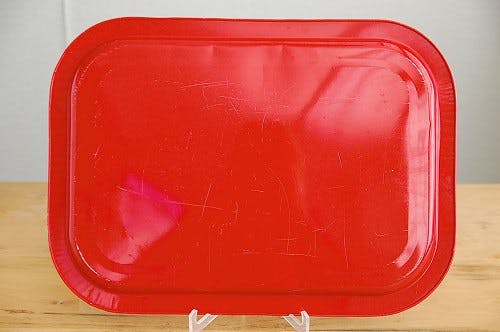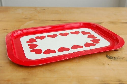 真っ赤と白色の組み合わせが、なんともかわいいこちらのブリキのトレー。眺めていると、ご機嫌になってきます。