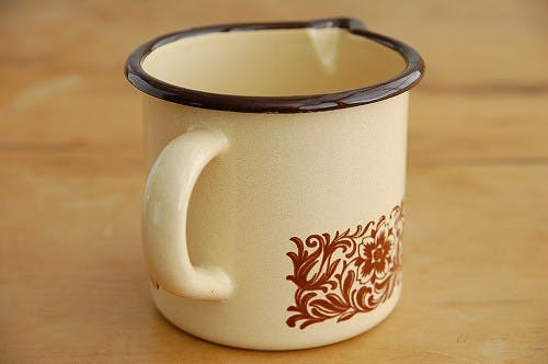 状態としては、茶色のふちに若干のホーロー落ちが見られますが、その他目立ったスクラッチや傷などがみられない、ヴィンテージ品としては概ね良好なコンディションです!