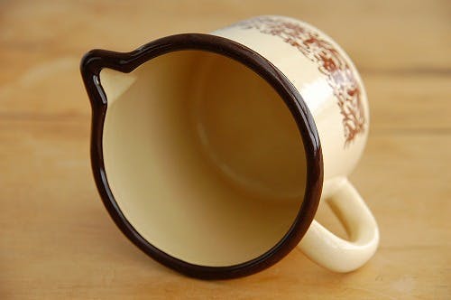 やさしいクリーム色に、温かい茶色のふちどりとお花模様が優しい印象をうけるジャグです。