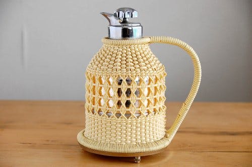 北欧雑貨を紹介する書籍や雑誌などにのることも多いこのビニールストロー素材を編んだカバーが付いている魔法瓶は大変人気の高いアイテムです。