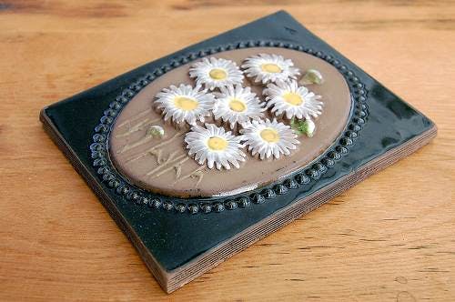 こちらの陶板もまた、シックな色合いの素朴な雰囲気の中にパッとかわいい小花モチーフの可愛らしさを兼ね揃えたJIEらしい作品です。
