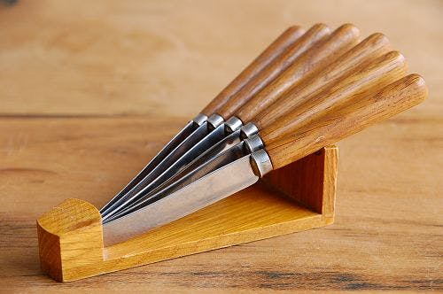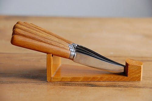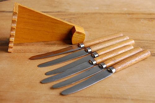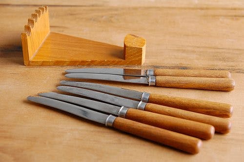スウェーデンで見つけた木製台付フルーツナイフセットです。