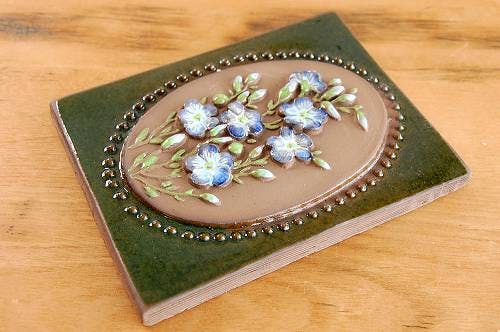 こちらの陶板もまた、シックな色合いの素朴な雰囲気の中に小花モチーフの可愛らしさを兼ね揃えたJIEらしい作品です。