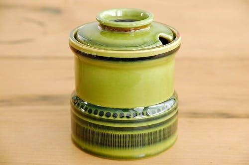 緑色がとってもきれいな陶器のキャニスターです。