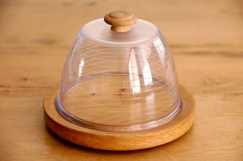 こちらはドームの部分がプラスティック製で土台が木製という、レトロな雰囲気のデザインです。とても軽く、使い勝手の良さそうな小さめのサイズなので、ちょこっと余ってしまったチーズや小さな焼き菓子を保存しておくのに大変便利です。