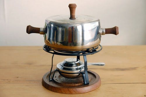 スウェーデンで見つけた木製の台付フォンデュパンセットが入荷しました!