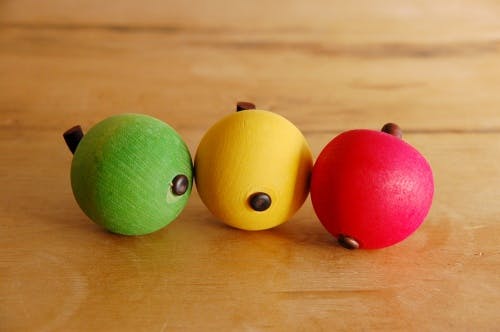 木の温もりと、カラフルな色合わせを楽しむことができる林檎の木製オブジェが、北欧はデンマークより届きました。