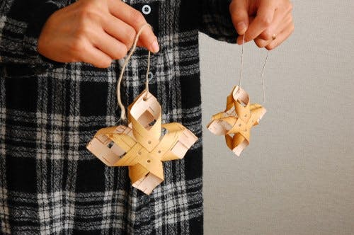 白樺の樹皮を剥いで乾燥させて、フィンランドの職人さんの手によってひとつひとつ丁寧に手作りされたオーナメントです。