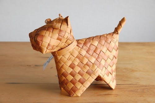 こちらは白樺の樹皮を丁寧になめした材料で作られた、スコティッシュテリアのオブジェです。