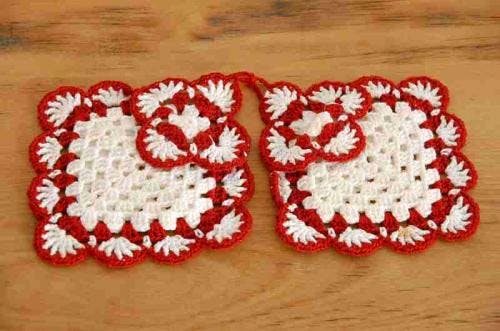 スウェーデンで見つけた手編みのポットマット2枚セット(スクエア)です。