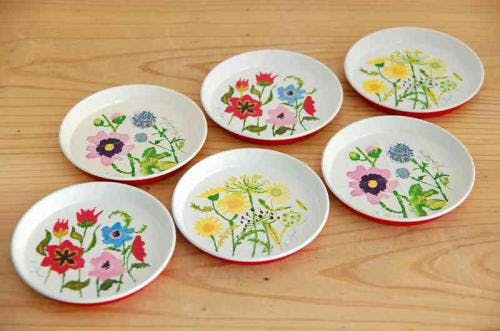 デンマーク製、ブリキのコースター6枚セット(可愛いお花)です。