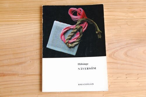 中を開くと、刺繍についての説明が載っています。全てスウェーデン語ですので、解読するのは難しいですが、装丁の雰囲気もとても魅力的なものですので、表紙を見えるようにして立て掛けて飾っておきたくなる、そんな貴重な一冊かと思います。