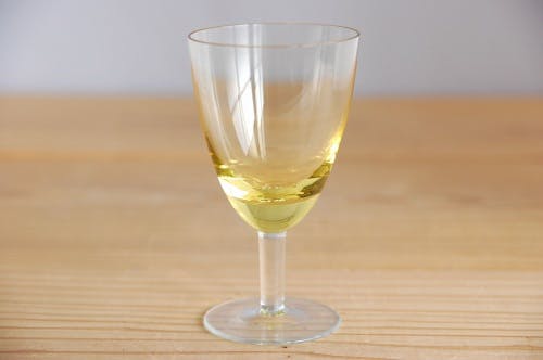 食前酒を楽しむためのワイングラスなどより小さなサイズのグラスです。繊細なイエローのガラスにうっとりしてしまいます。
