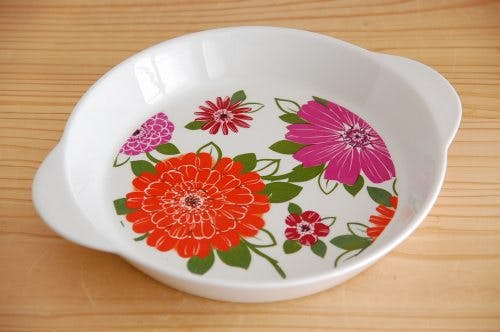 デンマークで見つけた鮮やかな花柄のオーブン皿が入荷しました。こちらはルクセンブルク製のお品です。