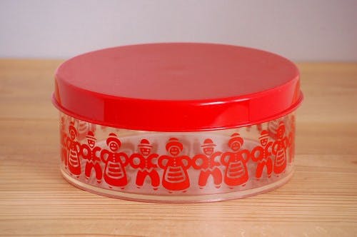デンマークで見つけたブラスティック製キャニスター(中)です。