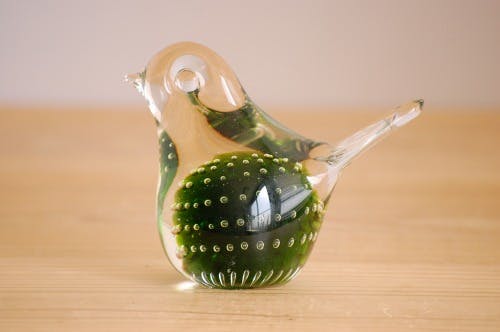 スウェーデンで見つけた、ガラスの小鳥のオブジェ(グリーン)です。