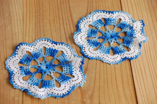 スウェーデンで見つけた手編みドイリー2枚セット(ブルー)です。