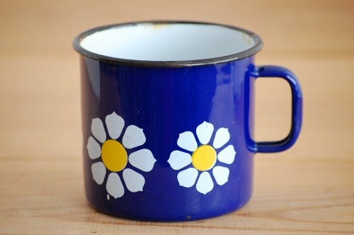 デンマークで見つけたホーロー製のカップ(ブルー、お花模様)です。