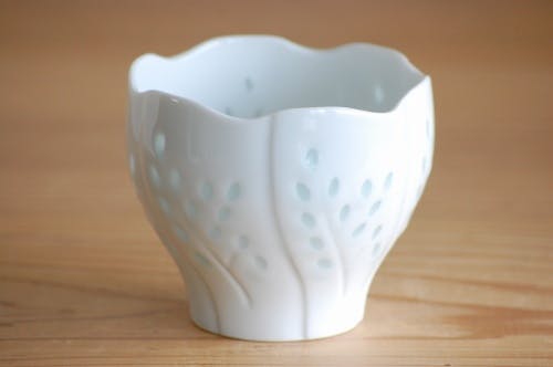 真っ白な陶器の清潔感といい、お花のような可憐なフォルムといい、透かしで入った花びら模様といい、本当に優しさや愛らしさを感じさせてくれる素敵なボウルですね。