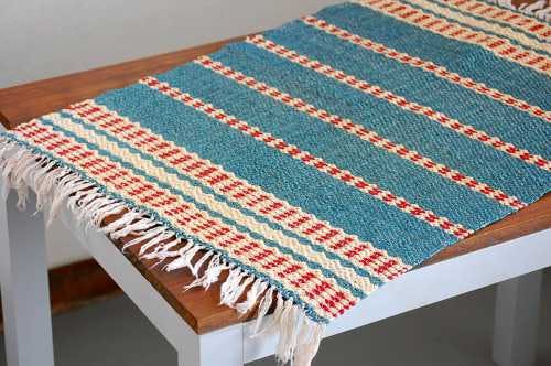 スウェーデンで見つけた、ストロー素材で編まれたマット(ブルー×レッド)です。