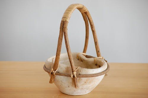 流木で作られたような持ち手と、石のような質感の陶器の器の組み合わせがナチュラル感たっぷりのお品です。