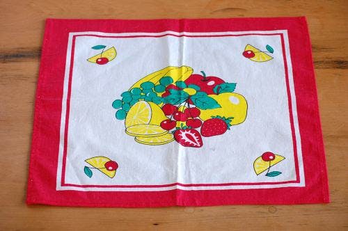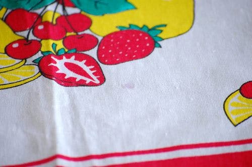 スウェーデンで見つけたフルーツ柄が可愛いセンタークロス(レッド)です。
