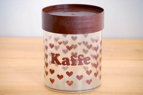 デンマークのErik Kold/エリック・コールド社の、プラスティック製コーヒーキャニスター(ブラウン、ハート模様)です。