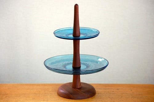 アフタヌーンティーと言いますとイギリスをイメージしますが、こちらはチーク材とブルーのガラスプレートという組み合わせが落ち着いた雰囲気で北欧テイスト満点です!