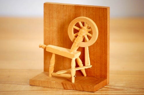 スウェーデンで見つけた、糸紡ぎ車のミニチュアオブジェです。