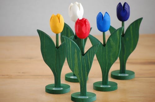 木の温もりと、カラフルな色合わせを楽しむことができるチューリップの木製オブジェが、北欧はデンマークより届きました。