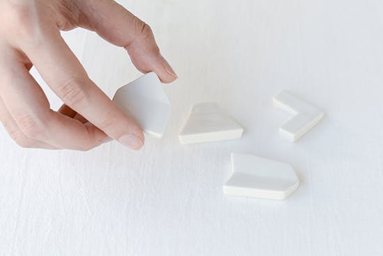 白の4種セットのかたちは山、矢羽、くの字、家の組み合わせです。