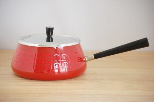 スウェーデンで見つけたホーロー製のフォンデュパン(レッド)です!